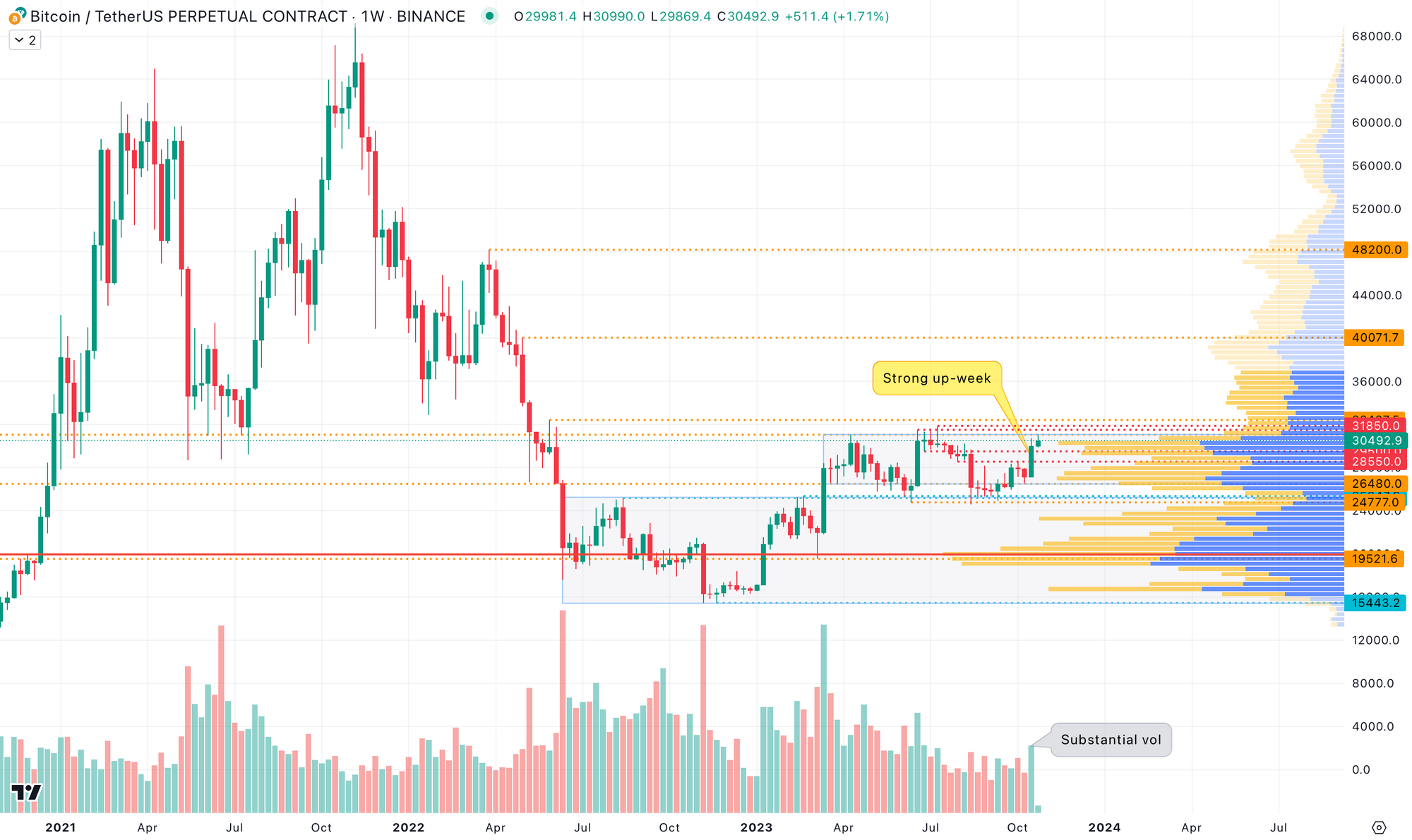 On the back of it, BTC posted a strong close on Thursday and on Friday, went decisively up above $29,000 first and then after some consolidation, posted another leg up to clear liquidity above $30,000.