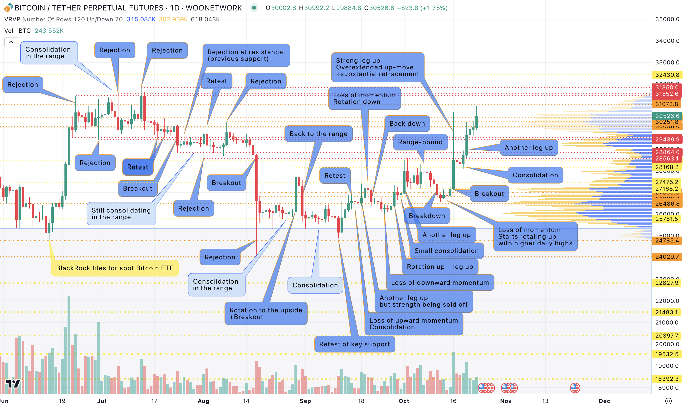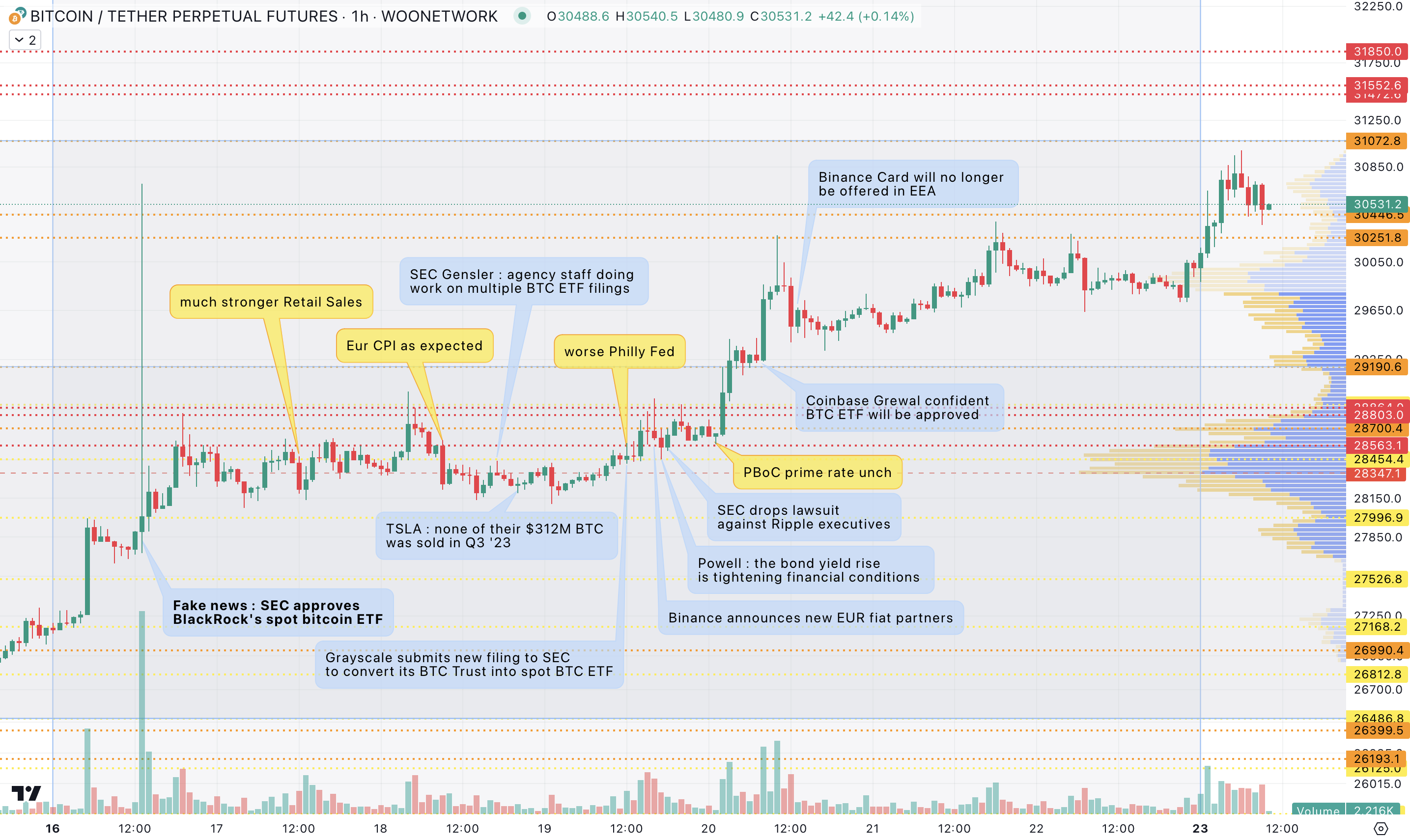 As it was consolidating below that level, the big news from Cointelegraph hit the wires that SEC had approved BlackRock’s spot BTC ETF.