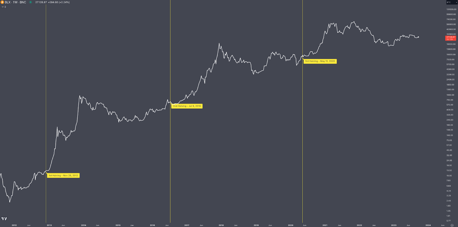 長期以來,我們看到市場密切關注商業和流動性週期。從歷史上看,比特幣減半事件也發生在新牛市之前。