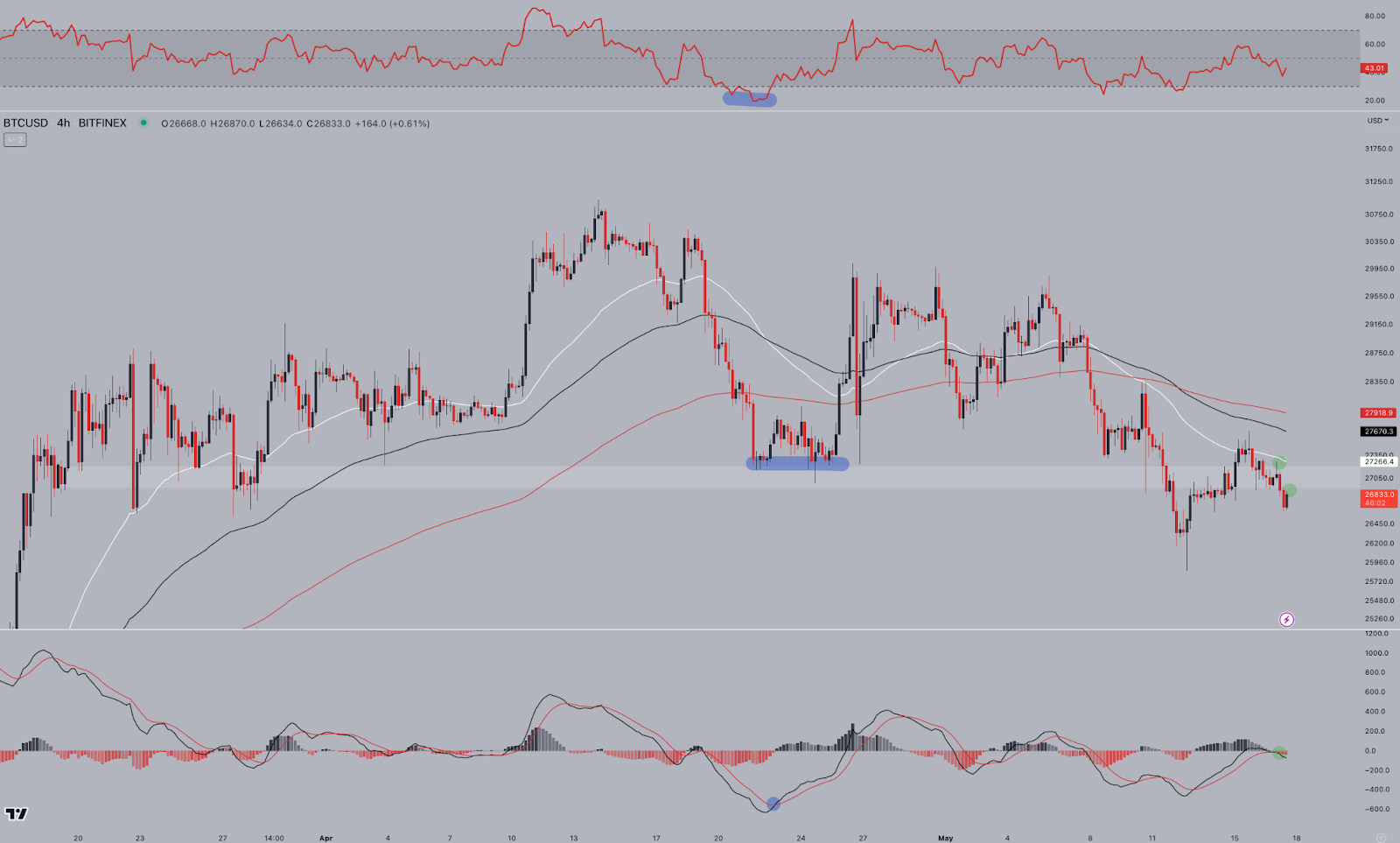 The chart above shows recent Bitcoin price action, with two different examples where multiple tools of analysis point in the same direction. For example, in the areas marked in blue, Bitcoin was at support, RSI was oversold, and the MACD printed a bullish cross.