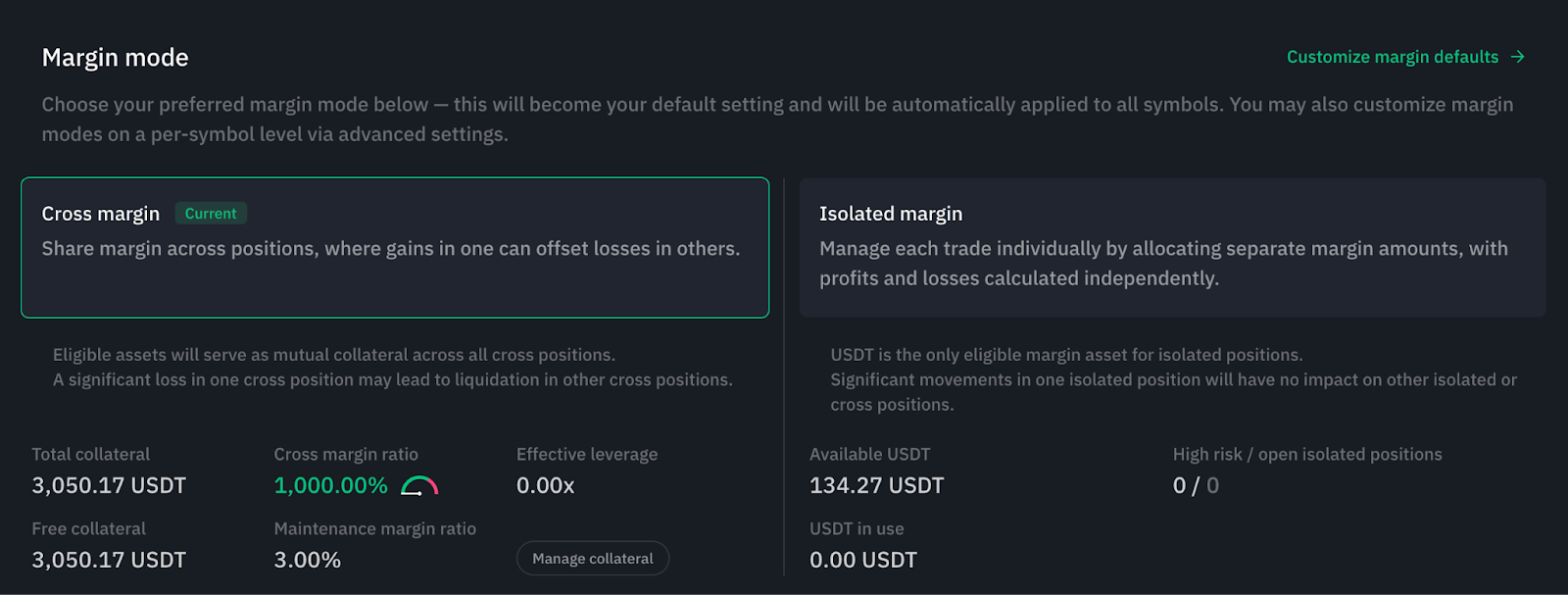 此外,用户还可以选择不同的保证金模式,分别为“全仓保证金”和“逐仓保证金”。