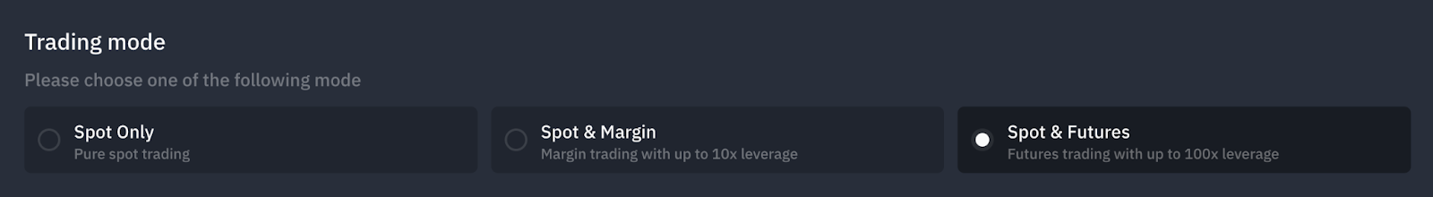 WOO X 用户可以选择他们偏好的交易模式,并在现货、保证金和合约之间轻松切换。这些选项可以从交易模式面板中找到。