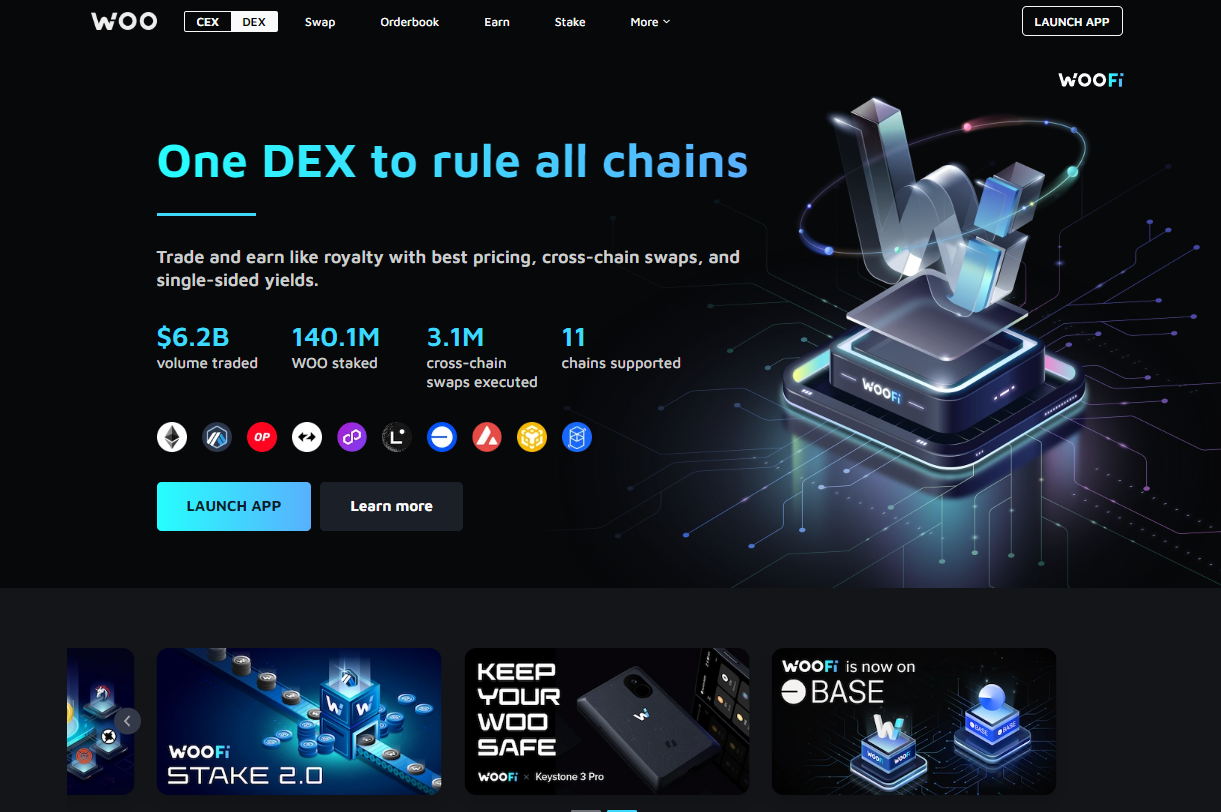 WOOFi 是一個 DEX,允許任何人都可以跨鏈交換藍籌資產、賺取單邊收益,並透過質押 WOO 代幣,享有協議 80% 收入的分潤。目前為止,它已經處理 60 億美元的總交易量,分享了 120 萬美元的實際收益,並透過 Stargate Bridge 進行超過 300 萬次跨鏈交易。